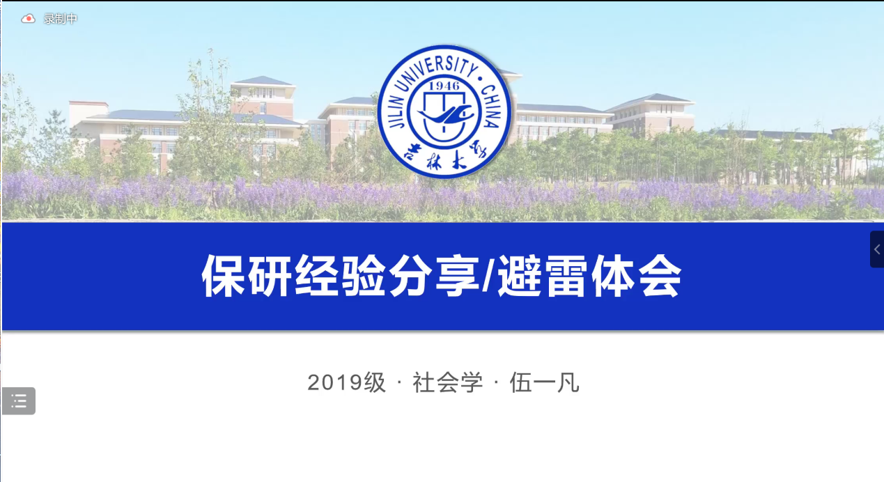社会工作专业的赵曼彤师姐强调了绩点、外语、阅读、科研等在保研前期准备的重要性,并从回答礼仪、着装仪表、环境设备、回答思路等角度对面试给出了建议。在最后,师姐贴心地鼓励同学放平心态,积极面对保研过程中的各种挫折,学会和失败和解,接纳不够完美的自己。