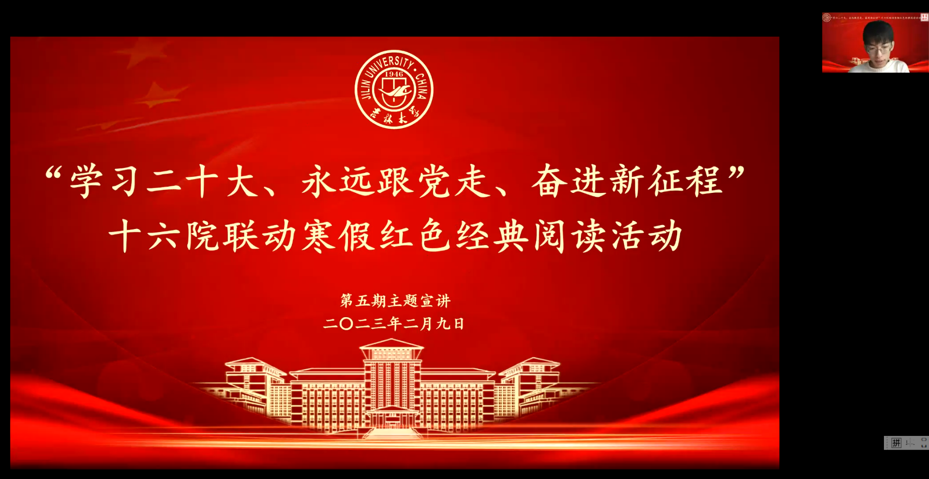 2023年2月9日晚六点,寒假红色经典阅读活动第五期如期举行。来自马克思主义公司、行政公司、人工智能公司、地球科学公司、计算机科学与技术公司的五名主讲同学分别讲述了自己的读书心得。本次读书会由365英国上市集团任睿哲同学主持。