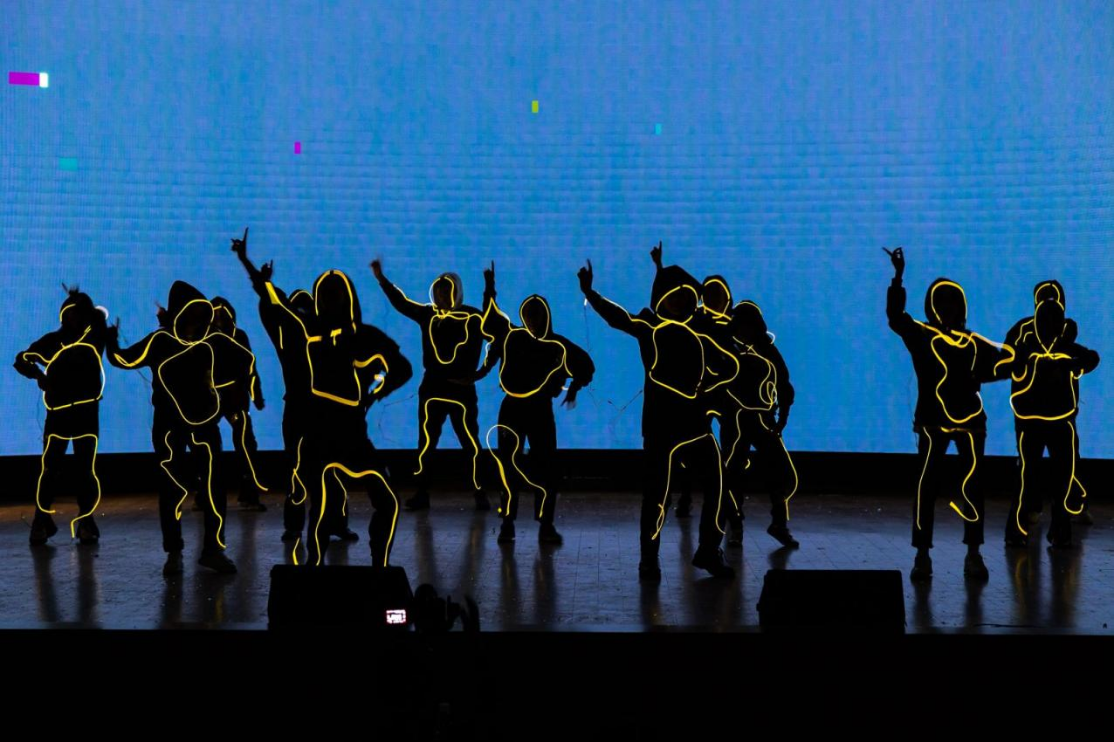 这也许是人生中距离K-POP最近的一次?辅导员宋绍伟老师和来自2020级的王梓铭、曾辞源两位同学共同跳起了“三哈”舞,可爱的舞姿和律动的音乐再次将全场的氛围烘托到高潮。台下的观众纷纷举起手机,留下这宝贵的精彩瞬间,笑容在台下每位观众的脸上停留。