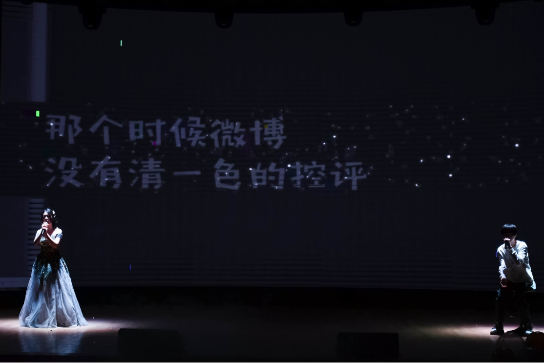 “菀菀黄柳丝,濛濛杂花垂”,春天自然有独属于哲社人的浪漫。当《情歌》的前奏逐渐响起,来自2022级4班的赵家仪、张羽青同学将怦然心动化成歌声传情达意。歌声中,她们唱着青春的美好,向观众们缓缓诉说。