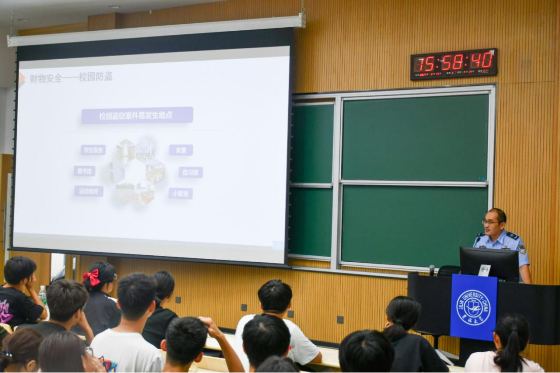 接着,魏老师从保护个人生命财产安全、警惕电信网络诈骗以及落实消防安全三个角度入手,以丰富详实的案例向同学们进行解读。在保护个人生命财产安全方面,魏老师建议同学们务必妥善保管自身贵重物品,在公共场合谨防陌生人搭讪,警惕扒手;发现财务丢失立马联系保卫处老师调取监控;如遇突发状况不要莽撞,在保证个人生命安全的前提下寻求帮助。在警惕电信网络诈骗方面,魏老师提醒同学们要关注网络信息安全,保护个人隐私;学会明辨是非,警惕刷单返现、“校园贷”等层出不穷的诈骗手段;下载并使用国家反诈中心APP,切实维护财产安全。在消防安全方面,魏老师结合案例向同学们展示火灾的危险与恐怖,建议同学们要自觉学习消防安全知识,树立安全意识,同时,魏老师特别强调,同学们绝对不要在宿舍使用大功率违禁电器,发现问题一定及时上报,将消防隐患在源头加以杜绝,避免威胁同学们的人身安全。