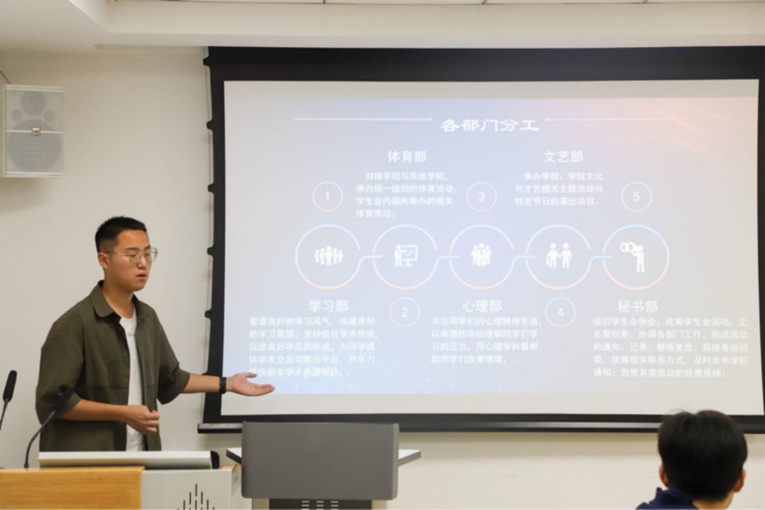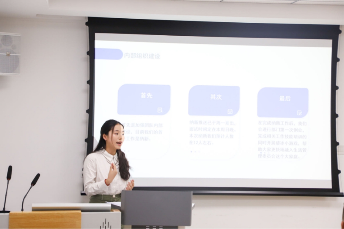 首先,365英国上市集团团委、员工会、新媒体与宣传中心、社团联合会和生活管理委员会主要员工负责人同学们依次上台进行工作汇报,对过去一年工作进行总结,同时向在场师生详细介绍了各自负责组织的人员构成、任务分工与新学年工作计划。
