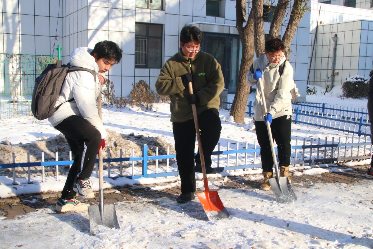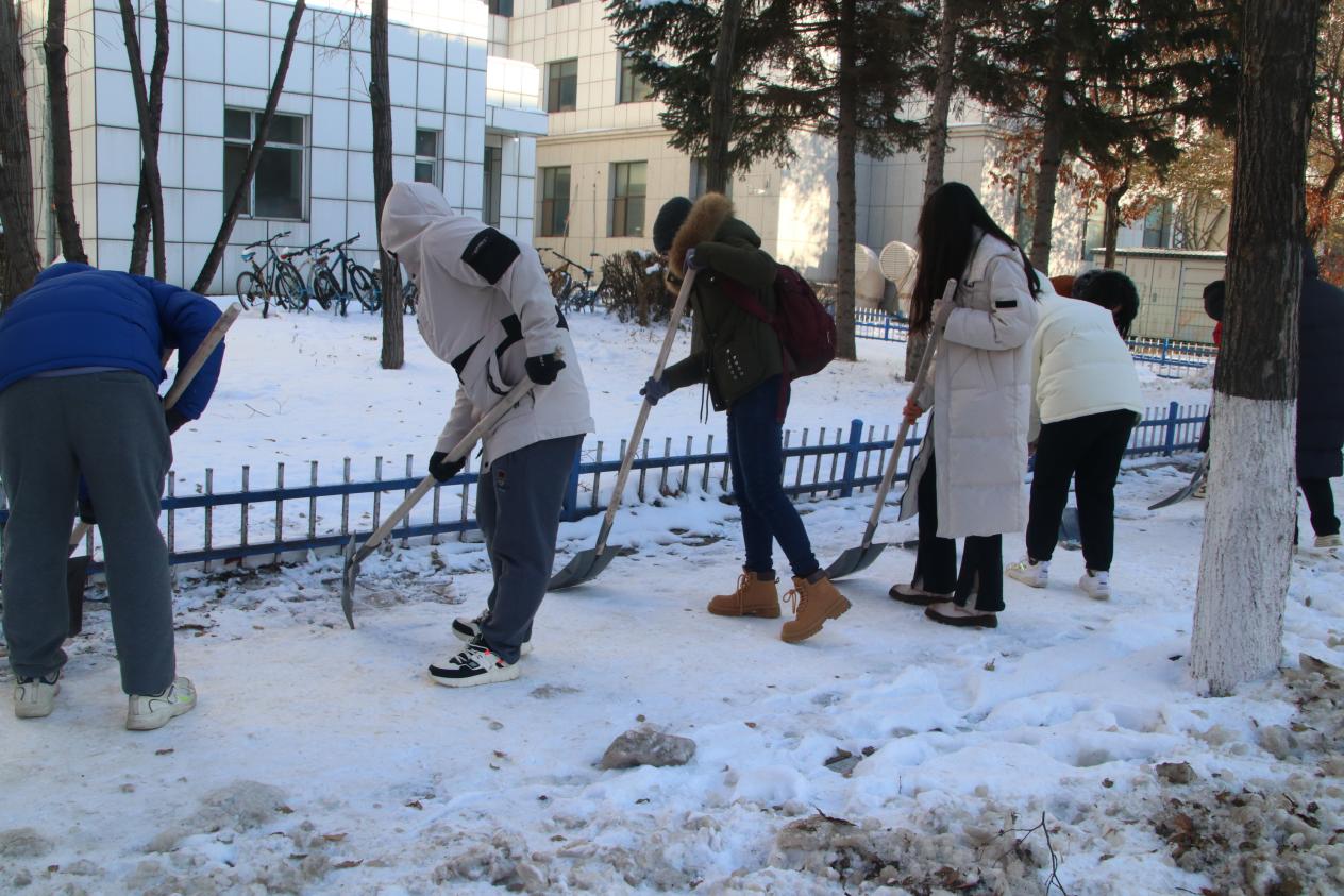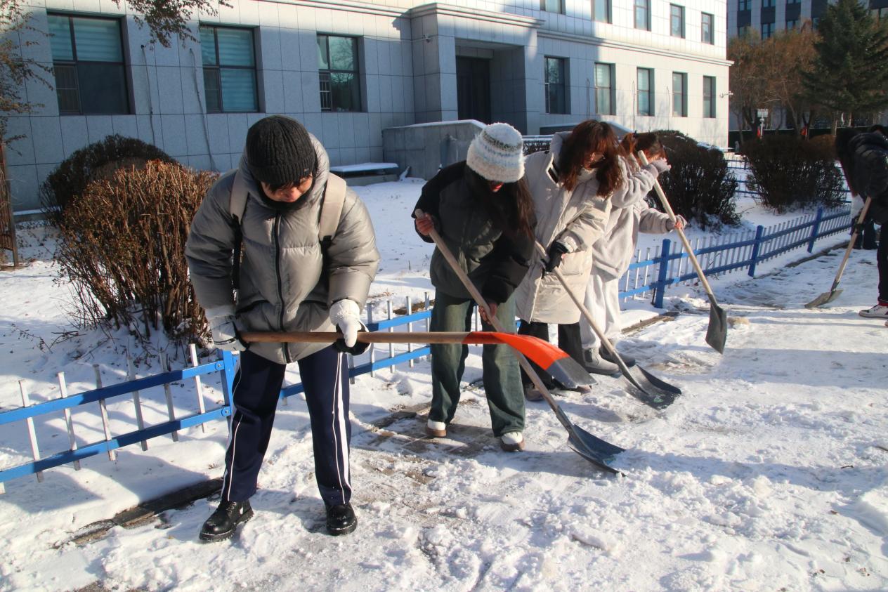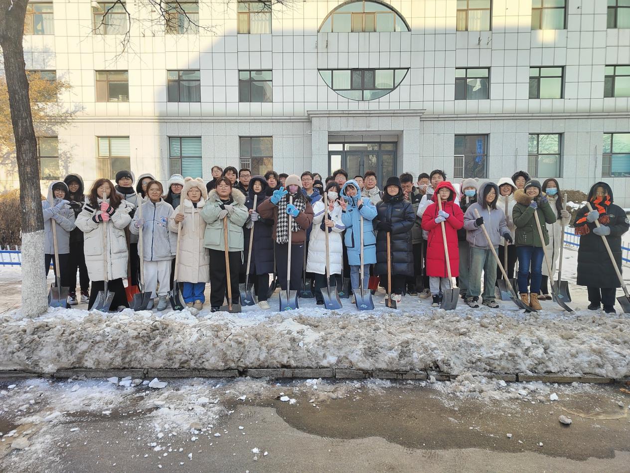 独往独来银粟地,一行一步玉沙声。凛冬至此,白雪若柳絮纷飞,天地如银装素裹,美丽的吉大校园更披一层银色的外衣。但是在这玉琢银装的美妙场景下,路面的积雪和坚冰也为吉大师生们的出行造成了困扰。按照公司相关工作安排,为保障师生出行安全,公司组织本科生各党支部员工党员、各员工组织和M·M学习研究会员工成员、各年级各班级主要负责人和2023级本科生“星火燎原”积极分子共计50余人,利用课余休息时间开展路面积雪清扫活动。
