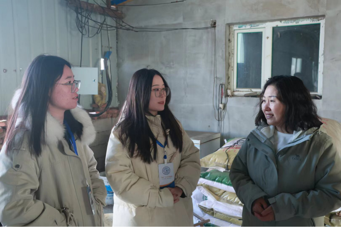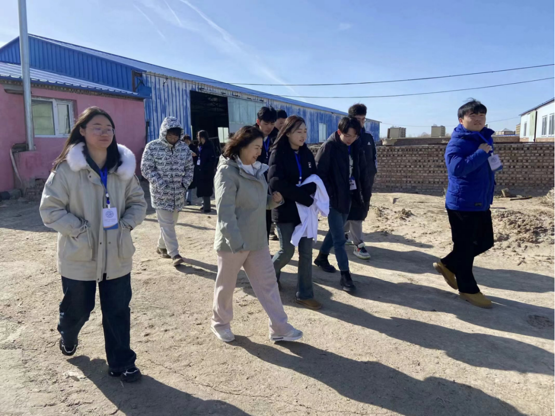 随后,实践团队到达半拉格森村佳鑫养殖专业合作社。在科技小院社长的带领下,大家一起参观了养殖场。团队同学对养殖场兴趣浓厚,与社长热情探讨了解养殖场的生产生活状况,并就育肥羊养殖技术与实际效果展开讨论。同时,同学们结合当地情况,与社长交流了当地盐碱地的生产难题与解决方案,对通榆地区乡村振兴事业有了更加全面的认识。