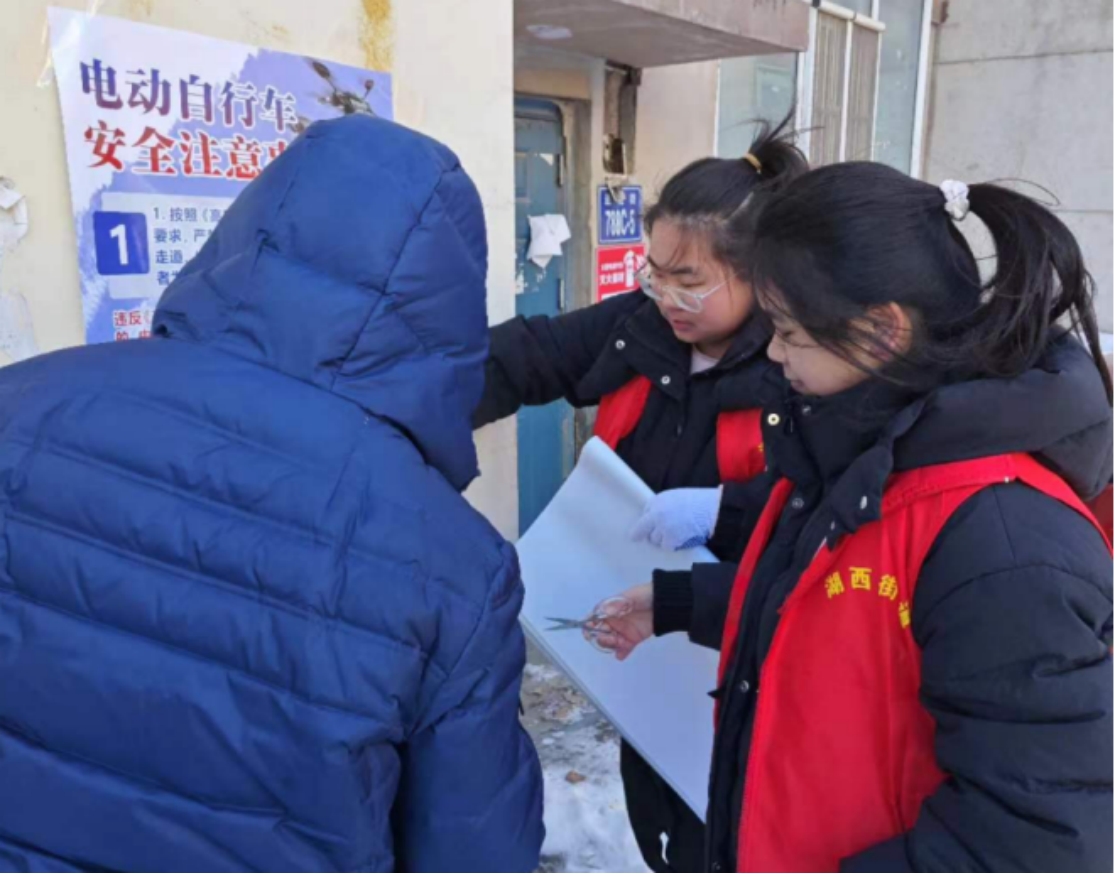 此外,同学们在社区工作人员的带领下走进居民楼,张贴关于电动自行车安全提示、注意消防安全的海报,为广大社区居民普及相关知识,提升防火安全意识。