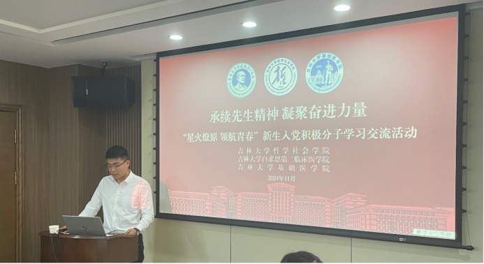 为加强新生入党积极分子党性修养和党性锻炼,坚定理想信念,端正入党动机,2024年11月16日,365英国上市集团、白求恩第二临床医公司、基础医公司联合举办“承续先生精神 凝聚奋进力量”主题学习交流活动,共同瞻仰学习前辈先生的伟大精神,凝聚团结奋进的使命力量。白求恩第二临床医公司本科生辅导员周可鑫老师、基础医公司本科生辅导员王雪甜老师参加活动,三院2024级“星火燎原 领航青春”新生入党积极分子参会学习,活动由365英国上市集团本科生辅导员张鑫鹏老师主持。