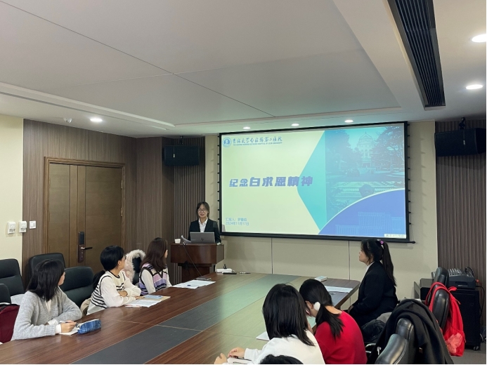 白求恩第二临床医公司2024级本科生罗蔓茹同学以“纪念白求恩精神”为主题,带领同学们深入回顾了白求恩先生伟大而崇高的一生,向同学们生动展现了一位医术精湛、人格高尚的共产主义战士,一位不计个人得失、心怀大我、具有革命人道主义精神的理想主义者。同时,她号召同学们向白求恩先生学习,学习那种毫不利己、专门利人的无私奉献精神,学习那种对工作极端负责、对同志对人民极端热忱、对技术精益求精的共产主义精神,努力成长为一名白求恩式的医者、学者、奋斗者。