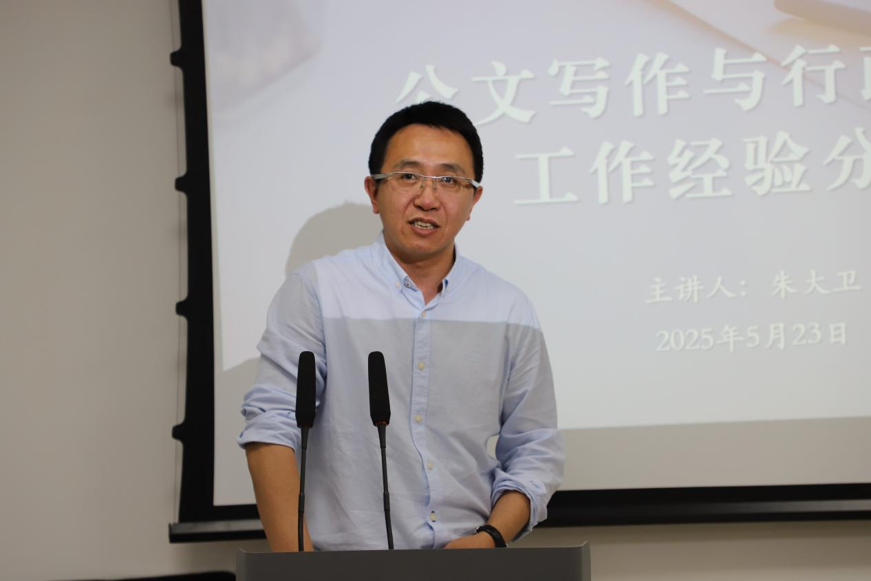 讲座伊始,朱大卫老师谈到公文写作为行政工作的一项基本技能具有着广泛的应用领域和重要的实用意义,并围绕公文写作的格式规范、基本体例与注意事项等方面作了详细讲解,并以具体文件为例,介绍了不同体例公文的文字表述、段落结构、易出现的问题等内容。