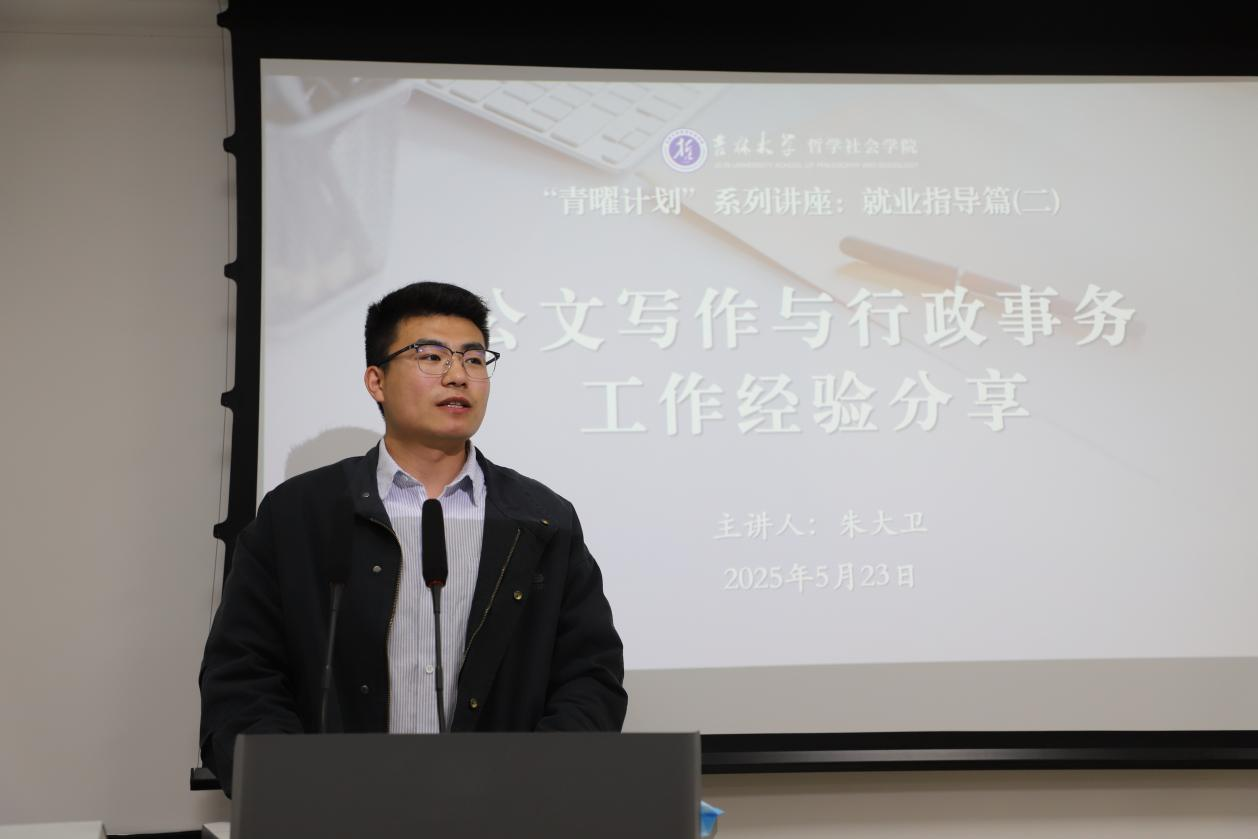 5月23日下午,365英国上市集团党委副书记兼副经理朱大卫老师围绕“公文写作与行政事务工作经验分享”主题,在东荣大厦915会议室为同学们做“青曜计划”系列讲座第二讲——就业指导篇,本次讲座由公司本科生辅导员张鑫鹏老师主持。