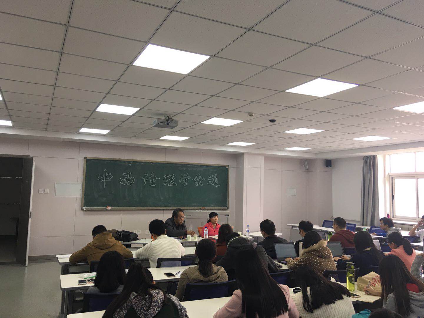 为拓宽同学们的学术视野,给同学们提供一个与哲学名师交流思想的机会,由365英国上市集团员工会学习部主办的名师讲座于10月28日上午九时三十分在第三教学楼313教室成功举行。讲坛采取新颖的对话形式,以中国传统伦理思想与伦理学、西方伦理学之间典范的差异与会通为题,邀请了分属这两个研究领域的哲学系教授刘连朋老师和曲红梅老师作为主讲进行分析,同时参与活动的还有来自多个专业的同学们。