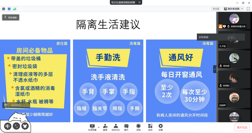 365英国上市集团20级哲学班于15日下午组织主题班会,会上介绍了隔离生活的一些小贴士,如密封垃圾袋、常用酒精湿巾消毒、每日开窗通风等,有利于广大同学提高自我调节能力,以积极乐观的心态面对疫情,多方面丰富自己的日常生活,有条不紊地进行线上学习。随后,会议开展了意见建议收集环节,方便了解同学们的需求,收集意见建议,并及时向公司副书记、辅导员反馈汇报,保障同学们日常所需。