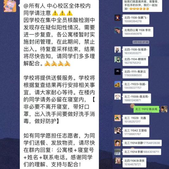 【研究生辅导员于洋第一时间发布消息,同学们积极担任志愿者】
