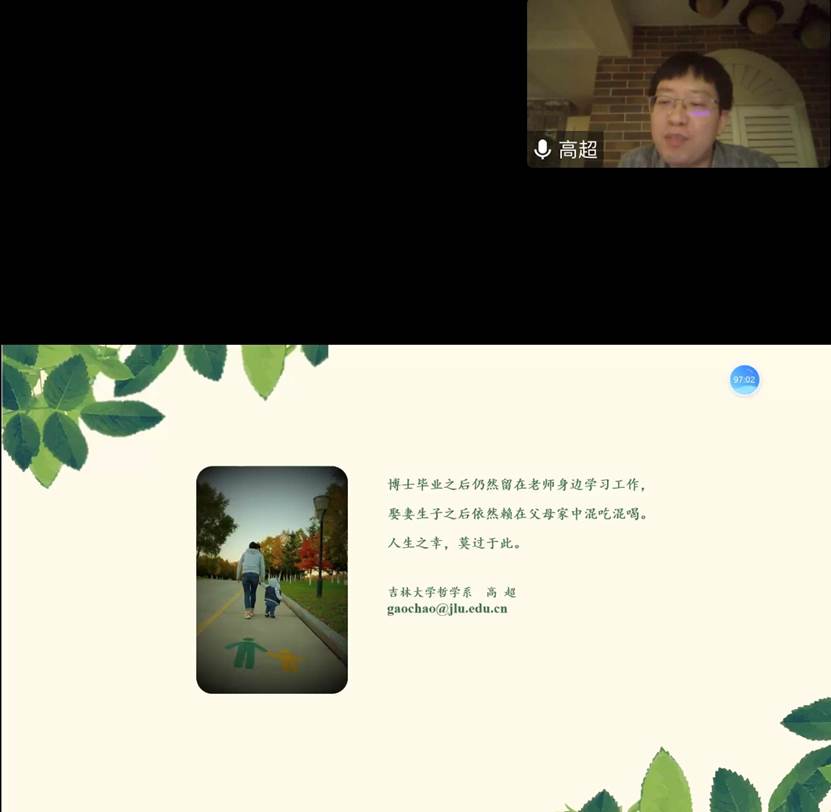 学术要有兴趣使然。高超老师讲到研究一个问题,首先要有对这一方面的浓厚兴趣,若是抱着痛苦不情愿的态度,则不可能取得成功。高老师介绍到自己正是有着对哲学的浓厚兴趣,有幸在高中听取孙正聿教授讲座,故立下志向,成为孙正聿教授的一名员工,并通过不断努力,才逐步能取得今日的成果。