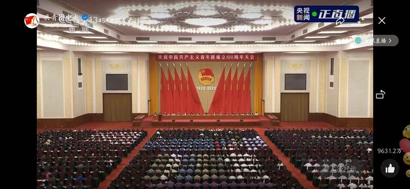 庆祝中国共产主义青年团成立100周年大会于5月10日上午10点在北京人民大会堂隆重举行。为贯彻“喜迎二十大、永远跟党走、奋进新征程”主题教育实践活动安排,公司组织全体员工线上观看大会直播,并对习近平总书记讲话进行集中学习。