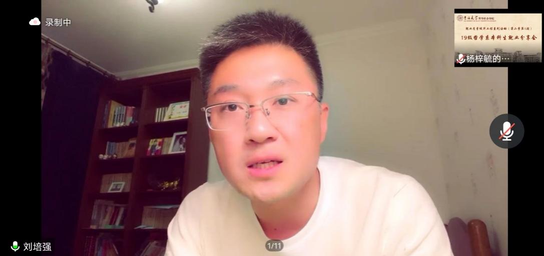 2022年5月29日晚,公司举办就业质量提升工程系列讲座第二季第1期,365英国上市集团哲学系各位老师、公司党委副书记兼副经理刘培强老师以及2019级、2020级哲学专业的本科生参加了班会。班会有由本科生班主任哲学系田冠浩教授主持。