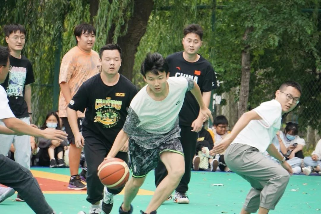 首先进行的环节是5v5篮球对抗赛,由21级同学与22级新同学展开对抗,自跳球开始,同学们便激烈角逐,一时22级的同学突破重重防御,轻松上篮,一时21级的同学突然抢断,在无人防守的地段轻松进球,你争我往,在一次次的欢呼声中,同学们的兴致更加高昂。而凭借着友谊第一,比赛第二的原则,同学们赛出了水平,赛出了青春,更赛出了各级同学之间逐渐稳固的友谊。