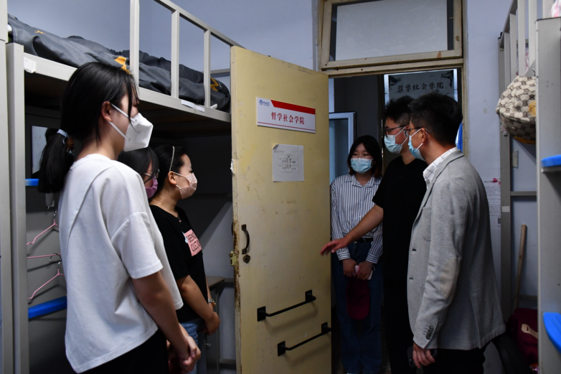 在走访过程中,两位老师走进寝室,与同学们进行交流,殷殷问候、谆谆关怀温暖了同学们的心。两位老师认真了解同学们在疫情防控特殊时期来校报到行程中的复杂情况及入校后的身体状况、心理状态和生活需求,仔细询问了同学们来到公司后是否遇到困难。