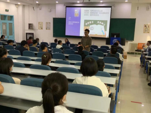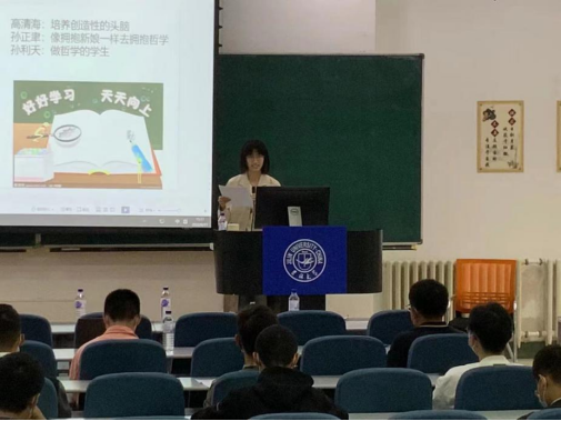 然后,哲学系副主任高超老师代表教师进行了讲话,高老师希望同学们可以珍惜大学四年的黄金时光,劝导同学们要有明确的学业及职业的规划,表达了他对同学们的殷切期盼。