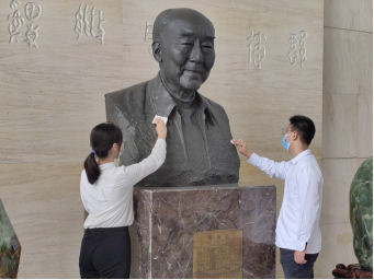 首先,员工代表们上前小心仔细地擦拭着高清海先生的雕像,追思高清海先生为吉大所做的杰出贡献。