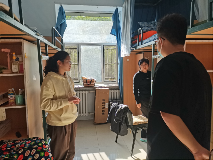 走访过程中,宋老师和辅导员助理们及时提出员工寝室存在的卫生问题,提醒同学们勤通风、常打扫;针对近期温差较大的天气情况,宋老师提醒同学们及时增添衣物,小心着凉感冒,同时严肃强调纪律,坚决杜绝在寝室使用大功率违规电器,以免造成校园生活安全隐患。