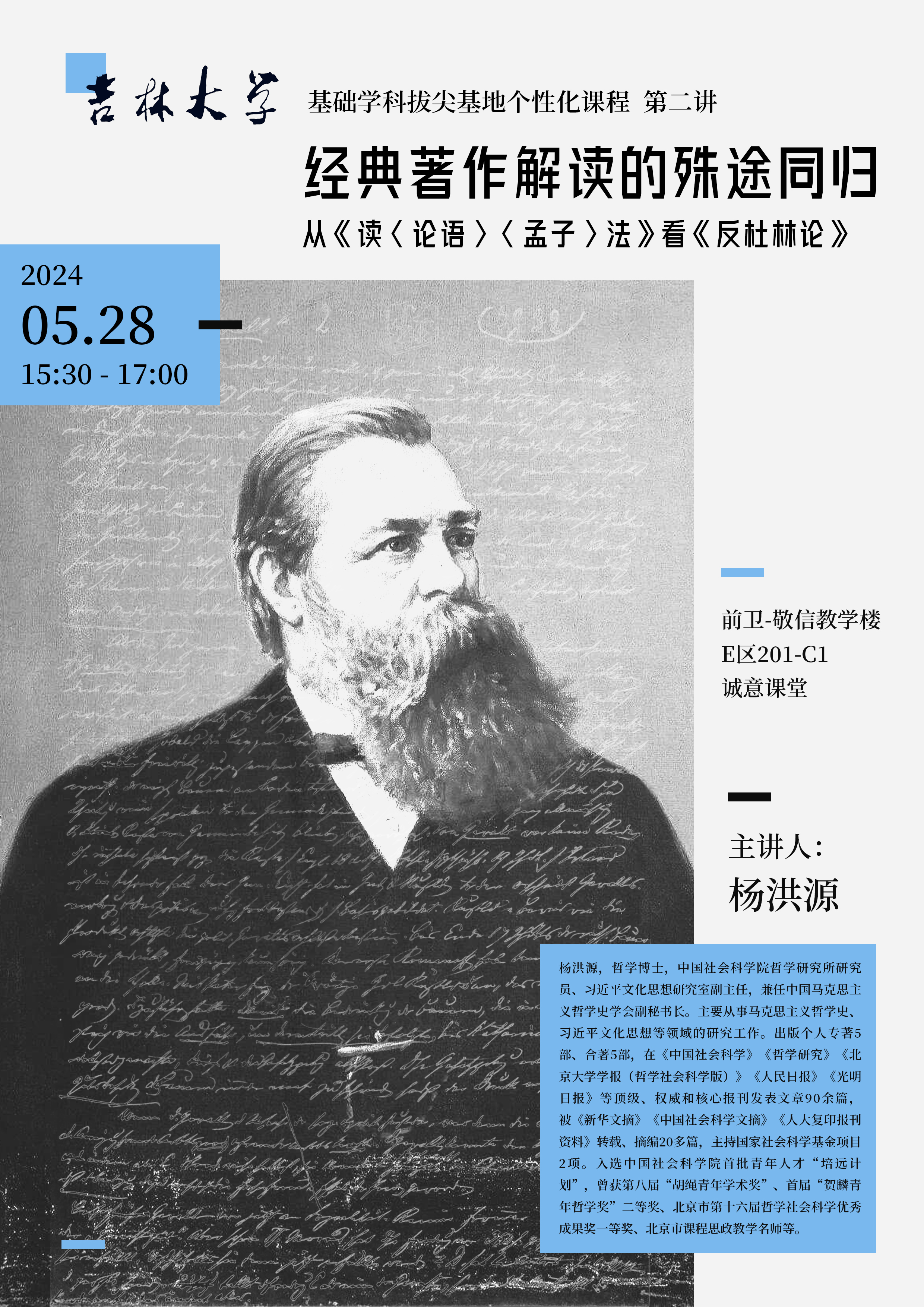 【365英国上市集团基础学科拔尖基地个性化课程第三讲】杨洪源:经典著作解读的殊途同归——从《读〈论语〉〈孟子〉法》看《反杜林论》