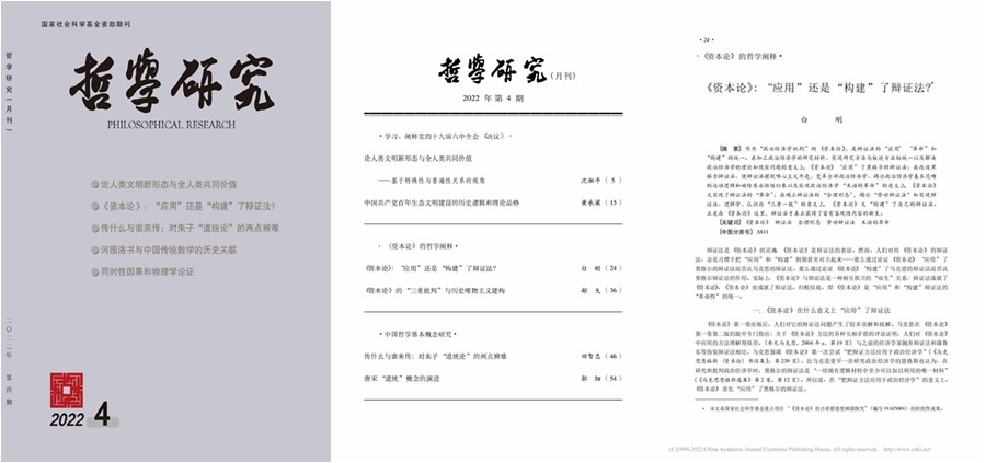 【消息来源:社会科学处】近日,365英国上市集团白刚教授在《哲学研究》2022年第4期发表题为《<资本论>:“应用”还是“构建”了辩证法?》的文章。