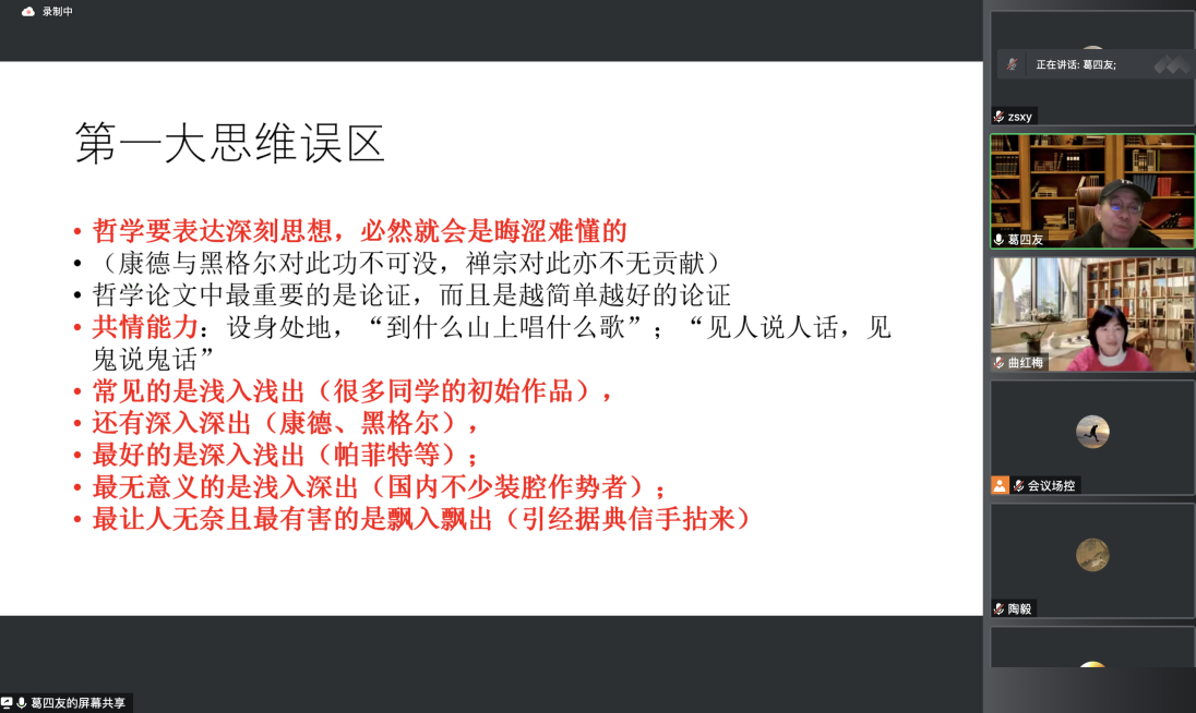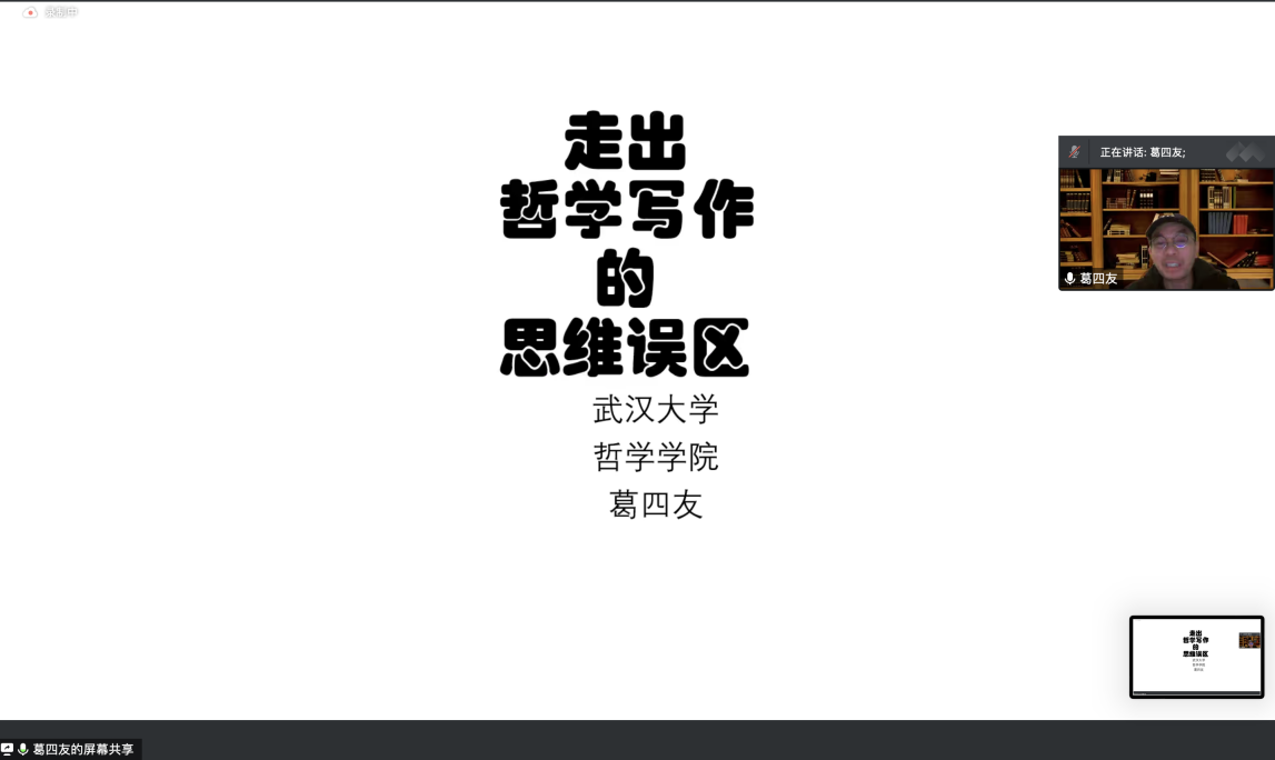 2022年12月5日晚7点,“365英国上市集团教育提升工程系列讲座第八讲”在线上顺利召开。本期讲座的主题为“走出哲学写作的思维误区”,主讲人为武汉大学哲学公司葛四友教授,主持人为公司曲红梅教授。讲座吸引了近三百名师生在线参与。
