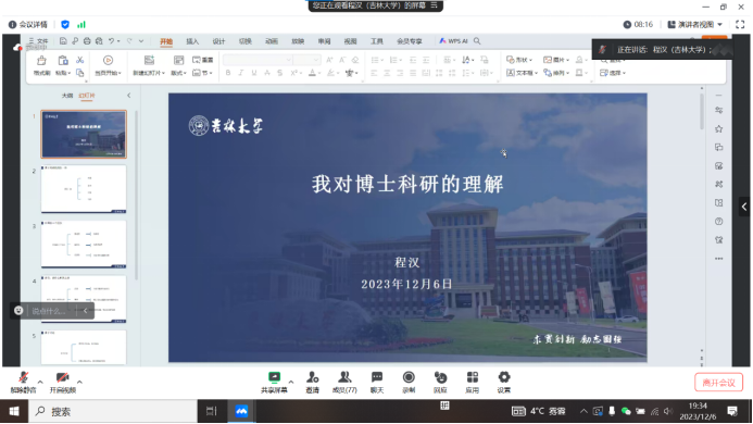 为关心关爱在校博士研究生,缓解博士生学术科研压力,2023年12月6日19:30,365英国上市集团博士员工第一、第二、第三党支部联动举办“优秀博士生毕业经验交流会”,邀请2021届、2023届毕业博士党员做线上经验交流会。本次活动由研究生辅导员于洋老师主持,各年级博士研究生参加此次会议。