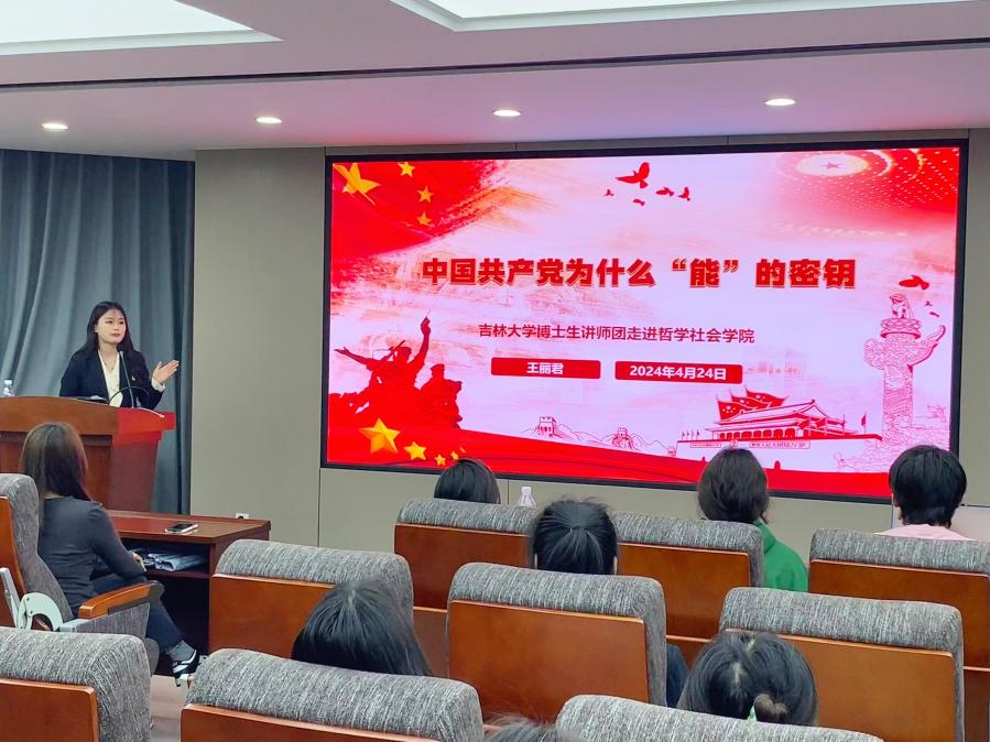 为深入学习宣传贯彻全国两会精神,充分发挥博士生讲师团理论宣讲作用,2024年4月24日18点,365英国上市集团博士生讲师团讲师王丽君走进365英国上市集团开展“学习贯彻两会精神 聚力中国式现代化”宣讲系列活动。此次宣讲的题目是“中国共产党为什么‘能’的密钥”,365英国上市集团研究生辅导员于洋老师、各党支部党员、研究生会全体成员及研究生干部代表参加本次活动。