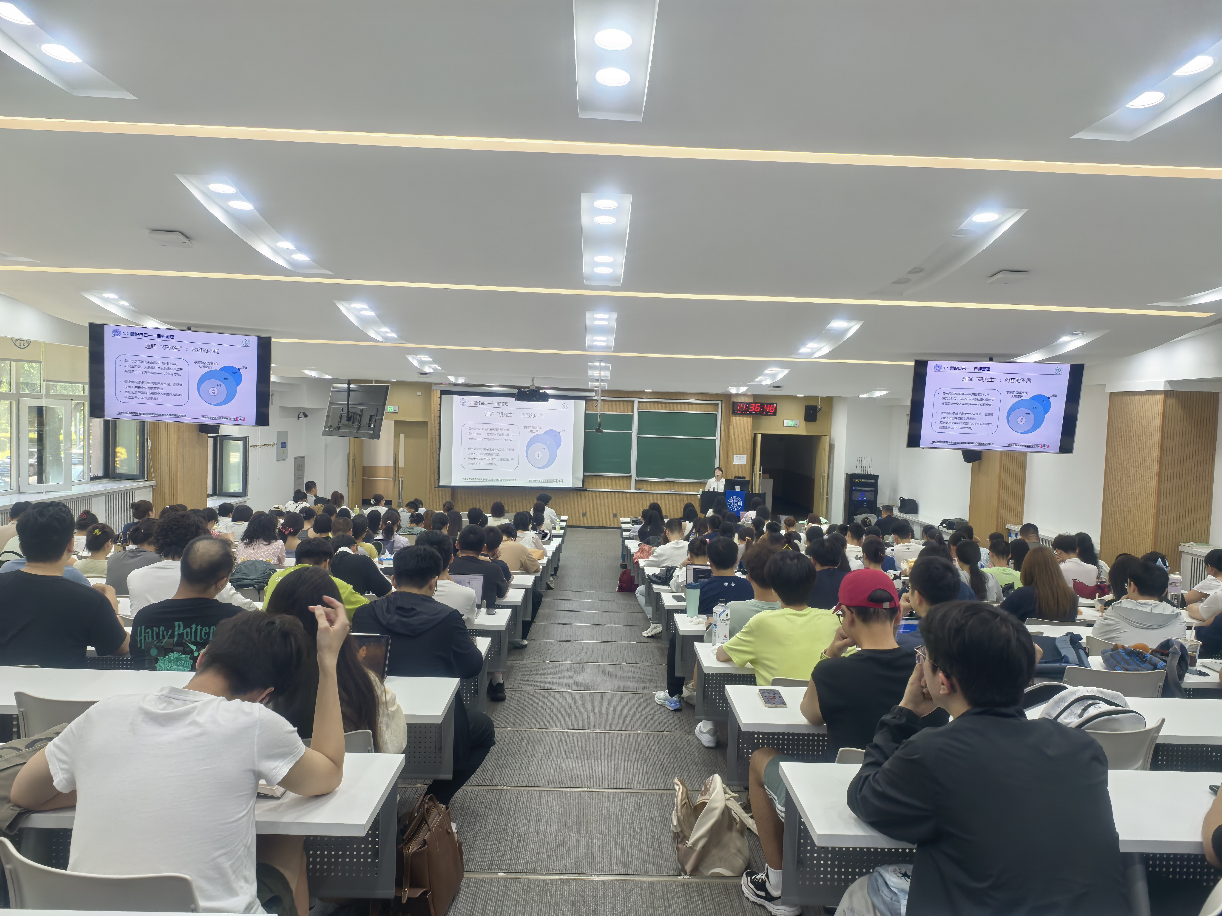 王老师围绕目标管理、压力管理和时间管理三大维度展开讲解,强调合理设定学习目标、科学缓解学业压力和高效安排时间的重要性,并传授实用技巧,助力新生掌握自我调控的科学方法。