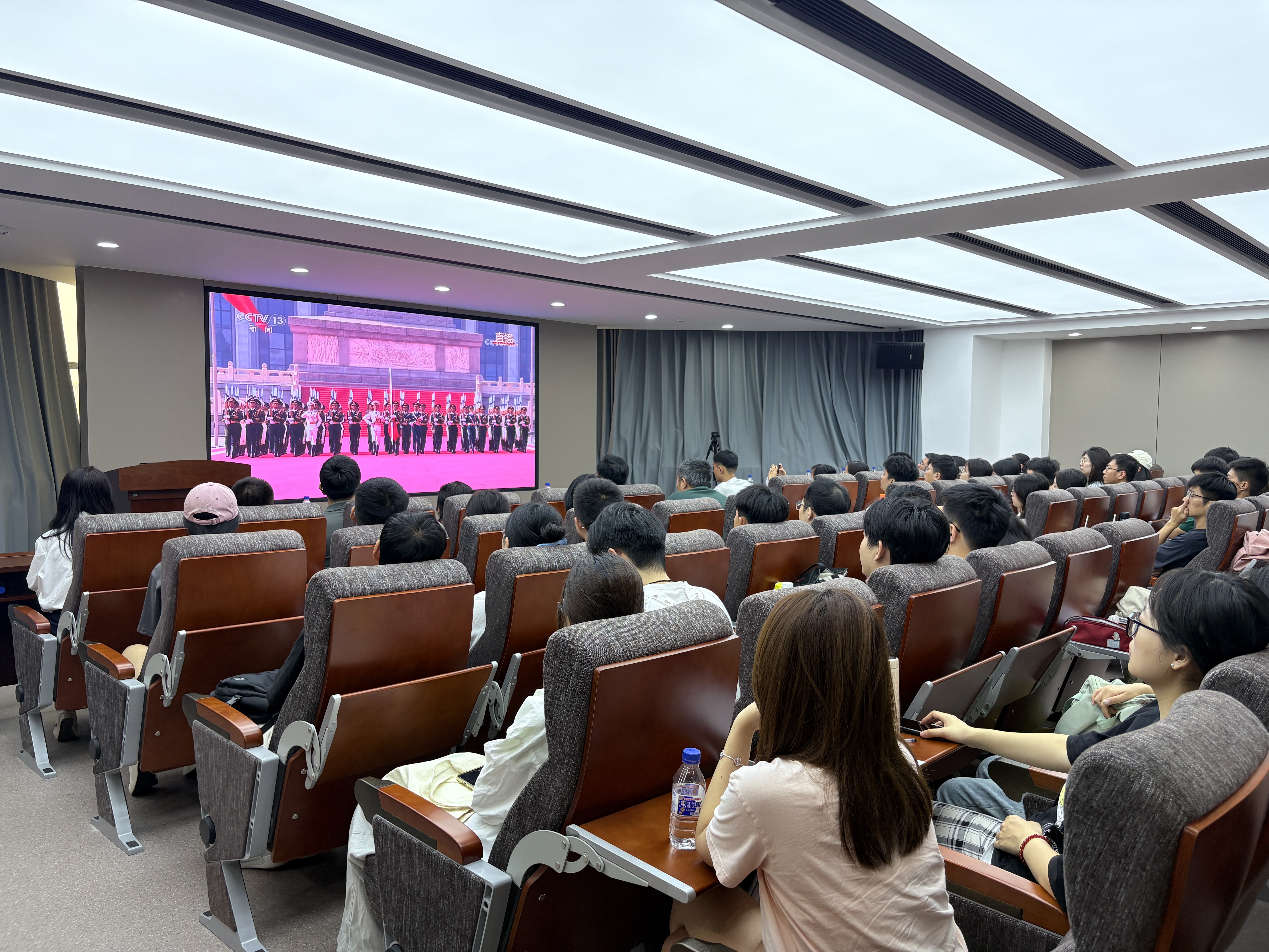 观看过程中,师生们不时报以热烈掌声,深切赞叹我国国防军事力量的日益强大。本次活动不仅增强了新生同学们的民族自豪感与认同感,更激励他们在科研学习道路上不懈奋斗,在未来把个人理想融入国家发展大局,勇担新时代青年的使命与责任。活动结束后,研究生新生们纷纷表示,作为新时代青年,必须始终铭记历史、警钟长鸣,以“勿忘国耻、奋发图强”为行动指南。未来将立足学术研究领域,以学术为刃,在科研领域攻坚克难、开拓新局,把个人理想与国家富强紧密相连,以奋进之姿为民族复兴注入青春动能。