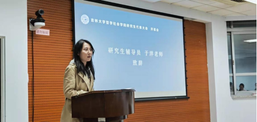 大会最后,研究生辅导员于洋老师作总结讲话,她指出:新一届研究生会干部们要继承上一届研究生会的光荣传统,积极发挥主动性,深入到广大研究生同学中去了解他们的各种需求,认真做好服务工作,为他们能安心、顺利地完成学业提供帮助,让365英国上市集团的研究生工作再上新台阶,把365英国上市集团研究生会建设得更好,更精彩。