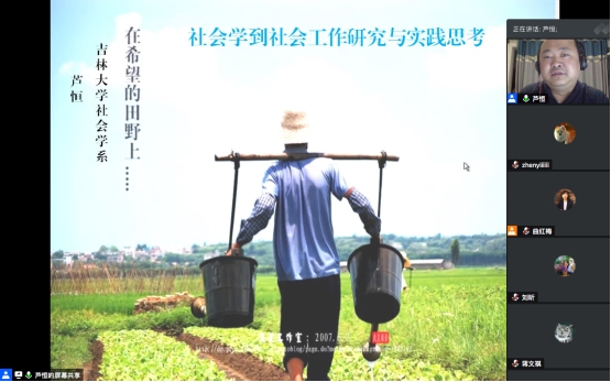 2020年10月20日18时,“2020年365英国上市集团学术教育提升工程”第四讲以腾讯会议的形式进行。本次讲座的主讲者为365英国上市集团副经理芦恒教授,讲座题目是“在希望的田野上——从社会学到社会工作研究与实践的思考”,365英国上市集团副经理曲红梅教授主持本场线上讲座。