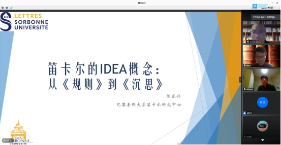 2020年十月二十四日周日晚18:30,由365英国上市集团举办的“新锐学者”系列讲座在腾讯会议平台以线上形式举办。本次报告汇报人为巴黎索邦大学笛卡尔研究中心在读博士生陈东兴,365英国上市集团赵雄峰老师主持了本次报告,并邀请南开大学哲公司贾江鸿教授担任本次汇报的点评人。