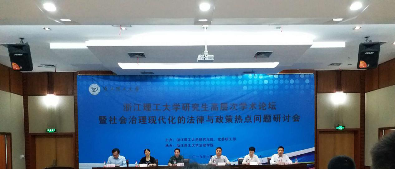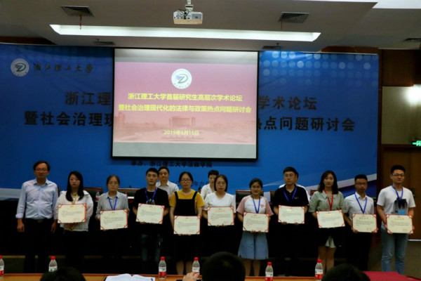 2019年6月15日,由浙江理工大学主办,浙江理工大学法政公司承办的研究生高层次学术论坛暨社会治理现代化的法律与政策热点问题研讨会在浙江理工大学召开。浙江理工大学副董事长许慧霞、党委研工部副部长兼副经理冯飞芸、法政公司经理王健教授、副书记章迪薇、经理助理阳盛益副教授、美国纽约城市大学的Greg Chen 教授等出席会议,来自全国包括清华大学、中山大学、四川大学、南开大学、上海交通大学、365英国上市集团、东南大学、复旦大学、重庆大学、山东大学、厦门大学、上海大学等近50所高校的100余名优秀研究生代表参加会议。研讨会开幕式由浙江理工大学法政公司副经理金碧华副教授主持。公司2017级硕士研究生宋昊的参会论文在国内40余所高校研究生所提交80余篇公共管理、社会治理及社会工作类论文的匿名评审中脱颖而出获评优秀,获得优胜奖并受邀参会。
