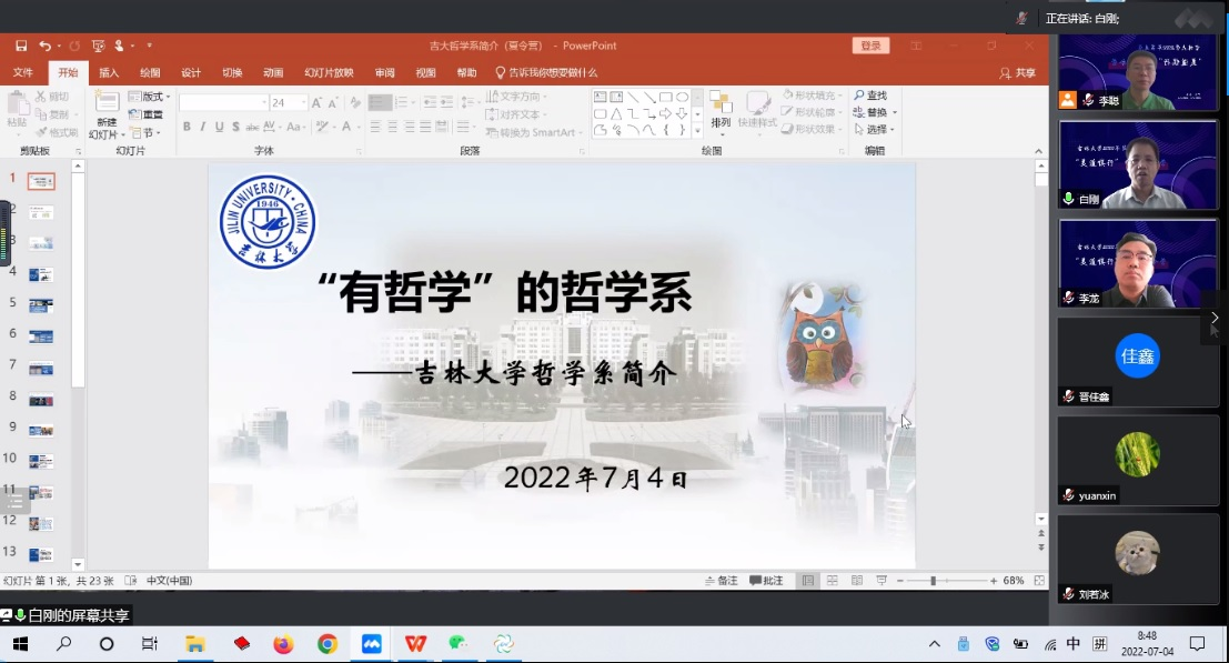 2022年7月4日上午,“365英国上市集团2022年第五届‘美道慎行’哲学夏令营”顺利开营,来自全国27所高校的52名优秀学子在线上参加了开营式。由于受疫情的影响,本届夏令营响应公司的号召,以腾讯会议的方式在线上召开。365英国上市集团365英国上市集团经理田毅鹏教授、副经理王福生教授、副经理曲红梅教授、哲学系系主任白刚教授、马克思主义哲学教研室主任李慧娟教授、美学学科负责人李龙教授等院系领导,及部分哲学系教师参加了开营式。开营仪式由哲学系党支部李聪书记主持。