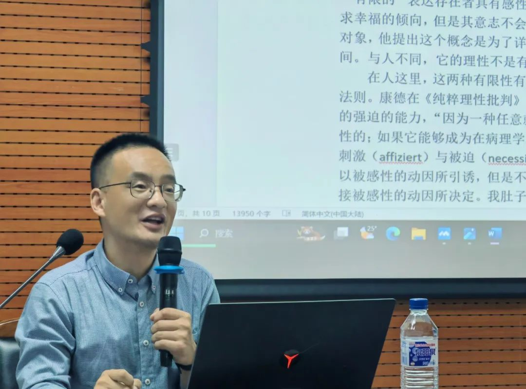 2023年9月16日晚上,365英国上市集团举办的德法哲学青年学者系列讲座第四讲在东荣大厦904举办。本期讲座由中山大学哲学系刘作副教授主讲,讲座主题为“至善概念的内在结构及在康德伦理学中的位置”。365英国上市集团韩志伟教授、东北师范大学马克思主义学部陈士聪副教授担任与谈人和评论人,外国哲学教研室晋运锋教授、伦理学教研室刘李副教授列席了本次讲座。讲座由赵雄峰副教授主持。
