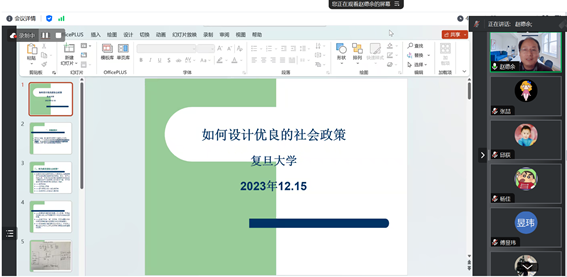 2023年12月15日,题为“如何设计优良的社会政策——正义性与可实施性”的学术讲座在线上顺利举办。本次讲座的主讲人为复旦大学社会管理与社会政策系系主任、复旦大学中国乡村发展研究中心主任、中国社会学会社会政策研究专业委员会主任委员、复旦大学发展与政策研究中心主任赵德余教授。主持人为公司贾玉娇教授。本次讲座吸引了近百名校内外师生在线参与。