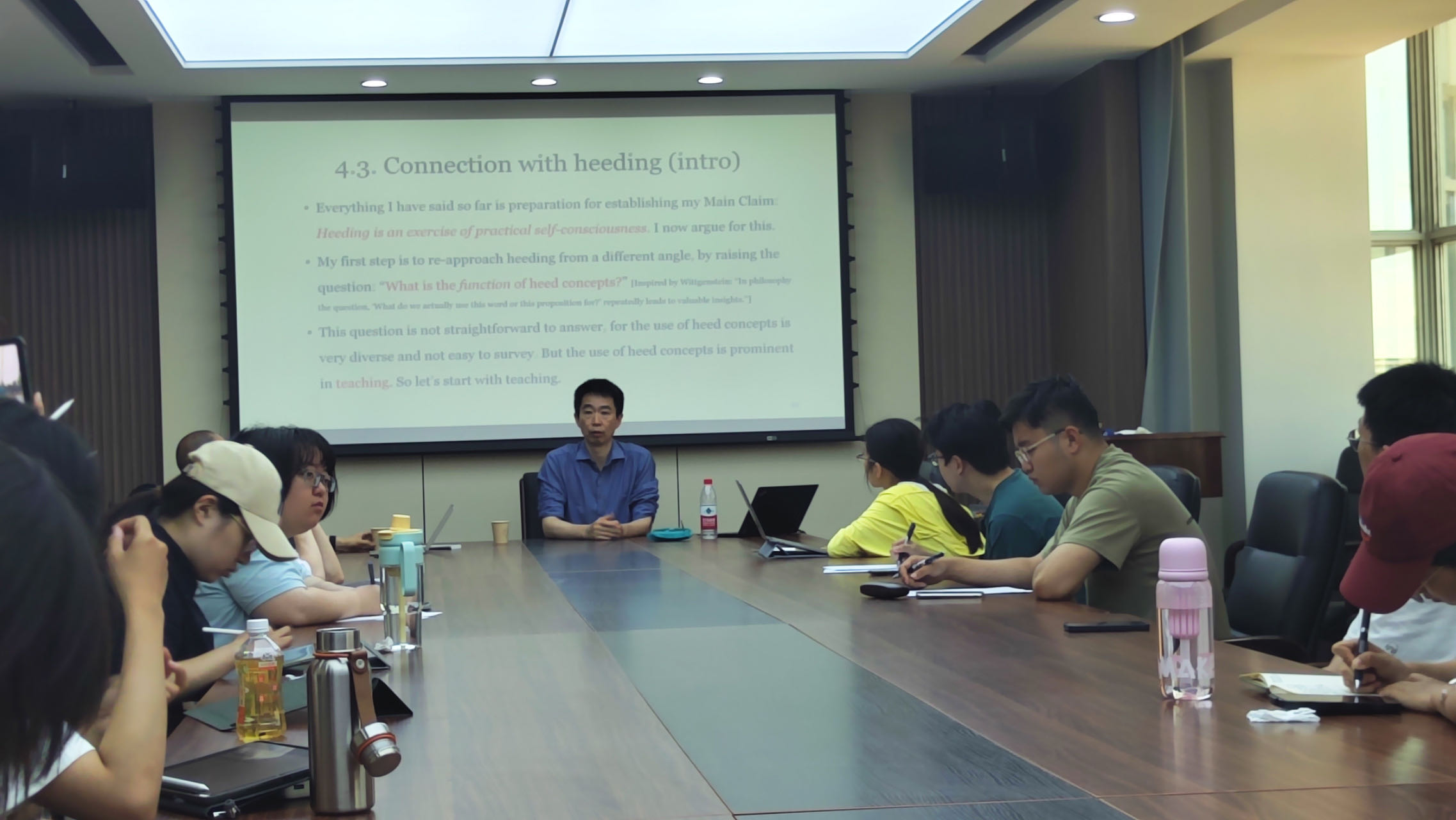 唐浩教授的讲座包括四个部分内容。其一是介绍安斯康姆式的实践知识,其二是回顾赖尔对“注意”(heeding)的讨论,其三是简述康德的“统觉”概念,其四是基于以上背景对“行动”概念的讨论。唐浩教授认为,“注意”既是倾向性的,又是即时性的。对于建构一种关于行动的理论,“注意”概念有三重功能:使行动被做“好”;整合诸子行动为一个行动整体;把行动和关于行动的自我知识关联起来。讲座之后,唐浩教授同365英国上市集团哲学系研究生和青年教师进行了热烈讨论,双方就讲座中的技术细节进行了深入交流。