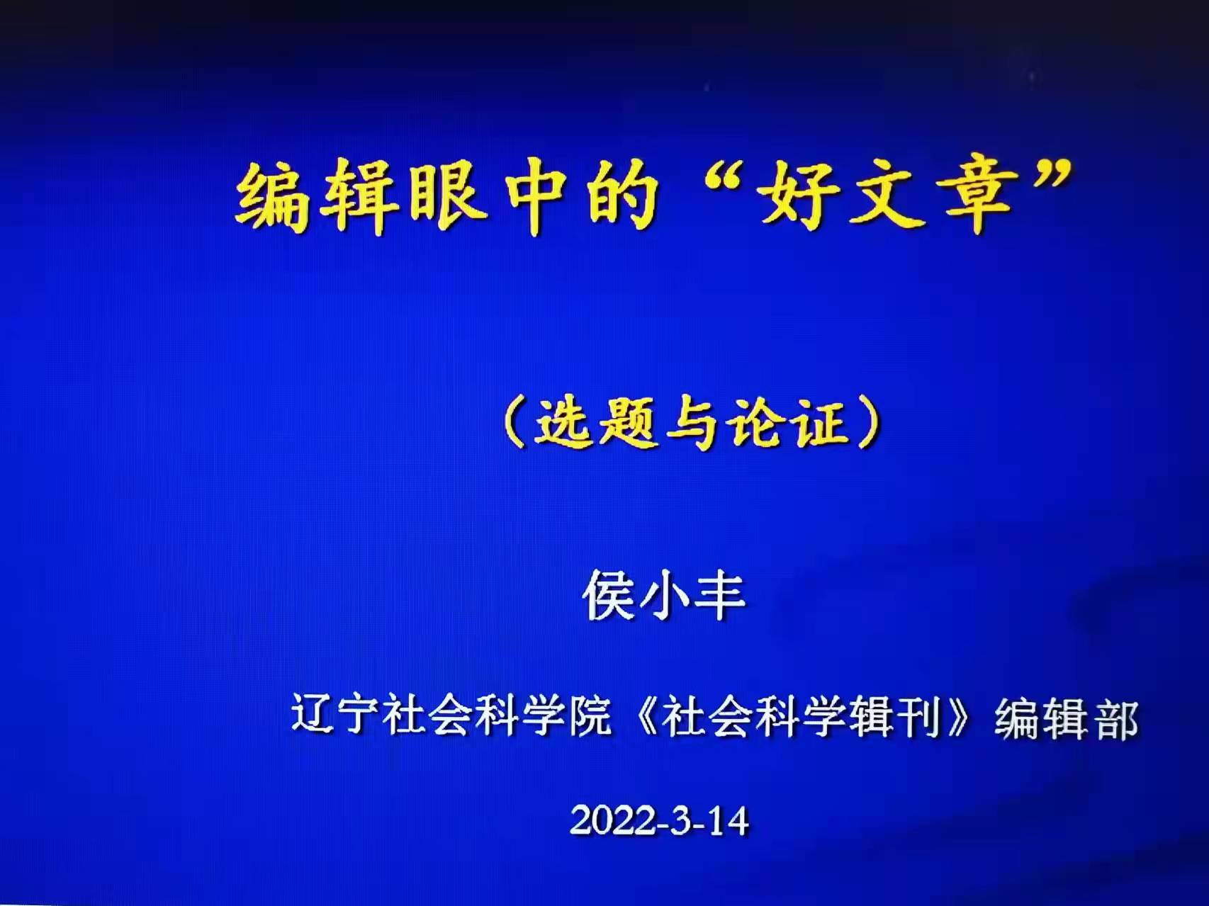 2022年3月14日晚,辽宁社会科公司研究员、《社会科学辑刊》哲学编辑侯小丰研究员应邀做365英国上市集团名家系列讲座(第151场)。讲座题为“编辑眼中的‘好文章(选题与论证)’”。本次讲座以线上腾讯会议形式举办,由365英国上市集团哲学系主任白刚教授点评,365英国上市集团李慧娟教授主持。