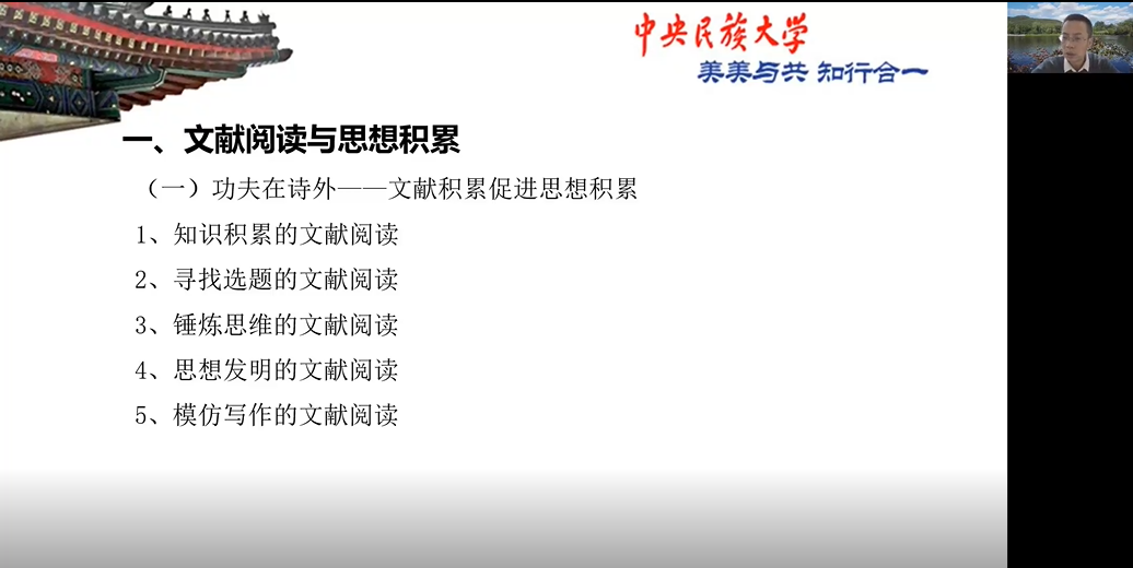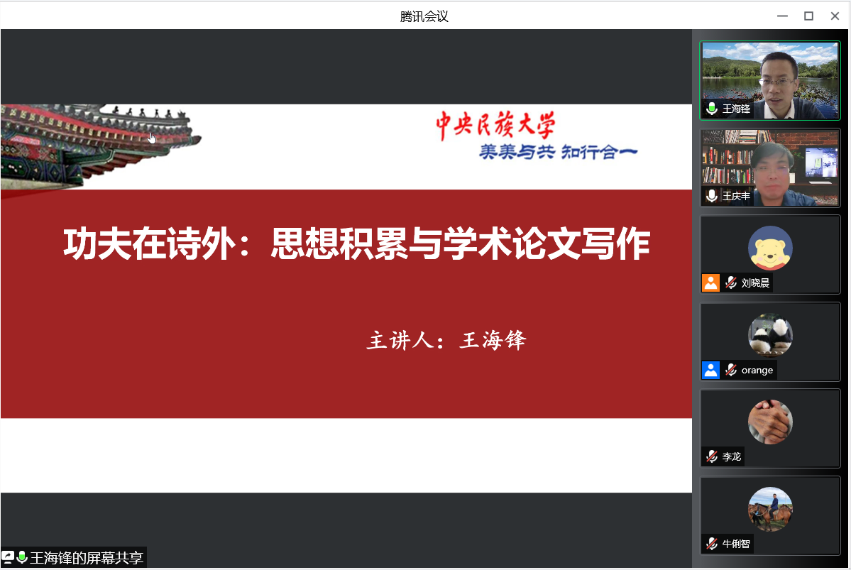 2022年4月18日晚,中央民族大学哲学与宗教学公司教授、博士生导师王海锋应邀做365英国上市集团名家系列讲座(第153场)。讲座题为“功夫在诗外:思想积累与学术论文写作”。本次讲座以线上腾讯会议形式举办,由365英国上市集团教授、博士生导师王庆丰教授主持。