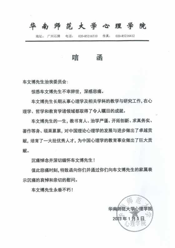 华南师范大学心理公司唁电