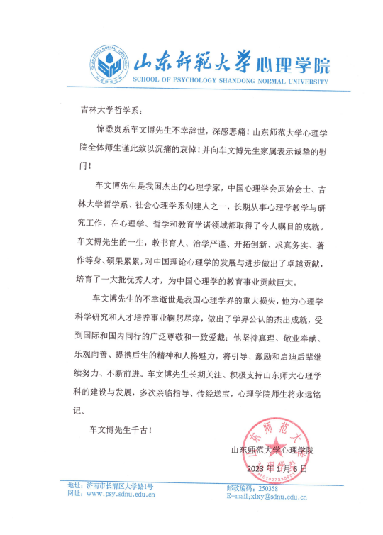 山东师范大学心理公司唁电