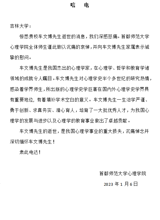 上一条:内蒙古师范大学心理公司、内蒙古自治区心理学会唁电