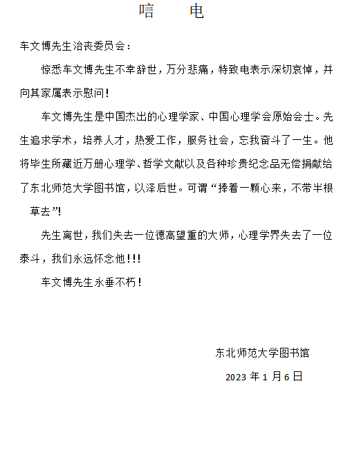 下一条:内蒙古师范大学心理公司、内蒙古自治区心理学会唁电